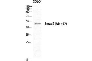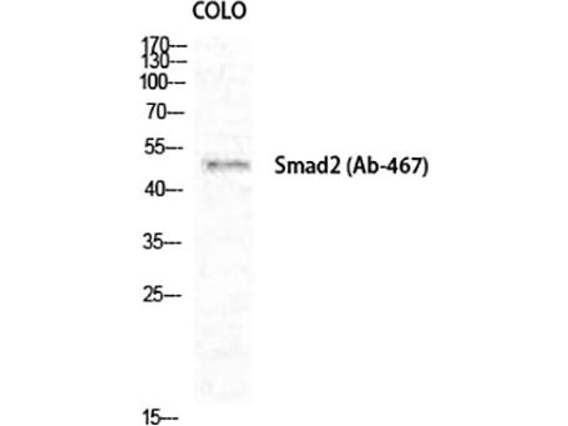 Rabbit Anti-Smad2 Polyclonal Antibody,SMAD2, MADH2, MADR2, Mothers against decapentaplegic homolog 2, MAD homolog 2, Mothers against DPP homolog 2, JV18-1, Mad-related protein 2, hMAD-2, SMAD family member 2, SMAD 2, Smad2, hSMAD2,The protein encoded by SMAD2 belongs to the SMAD, a family of proteins similar to the gene products of the Drosophila gene 'mothers against decapentaplegic' (Mad) and the C. elegans gene Sma. SMAD proteins are signal transducers and transcriptional modulators that mediate multiple signaling pathways. This protein mediates the signal of the transforming growth factor (TGF)-beta, and thus regulates multiple cellular processes, such as cell proliferation, apoptosis, and differentiation. This protein is recruited to the TGF-beta receptors through its interaction with the SMAD anchor for receptor activation (SARA) protein. In response to TGF-beta signal, this protein is phosphorylated by the TGF-beta receptors. The phosphorylation induces the dissociation of this protein with SARA and the association with the family member SMAD4. The association with SMAD4 is important for the translocation of this protein into the nucleus, where it binds to target promoters and forms a transcription repressor complex with other cofactors. This protein can also be phosphorylated by activin type 1 receptor kinase, and mediates the signal from the activin. Alternatively spliced transcript variants have been observed for this gene.,Mothers against decapentaplegic homolog 2
