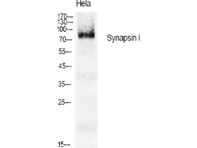 Rabbit Anti-Synapsin I Polyclonal Antibody,SYN1, Synapsin-1, Brain protein 4.1, Synapsin I,SYN1 is a member of the synapsin gene family. Synapsins encode neuronal phosphoproteins which associate with the cytoplasmic surface of synaptic vesicles. Family members are characterized by common protein domains, and they are implicated in synaptogenesis and the modulation of neurotransmitter release, suggesting a potential role in several neuropsychiatric diseases. This member of the synapsin family plays a role in regulation of axonogenesis and synaptogenesis. Synapsin-1 encoded serves as a substrate for several different protein kinases and phosphorylation may function in the regulation of this protein in the nerve terminal. Mutations in this gene may be associated with X-linked disorders with primary neuronal degeneration such as Rett syndrome. Alternatively spliced transcript variants encoding different isoforms have been identified.,Synapsin-1