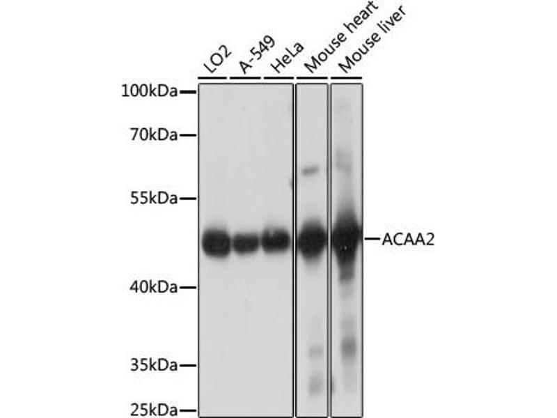 The encoded protein catalyzes the last step of the mitochondrial fatty acid beta-oxidation spiral. Unlike most mitochondrial matrix proteins, it contains a non-cleavable amino-terminal targeting signal.,ACAA2,DSAEC,Epigenetics & Nuclear Signaling,RNA Binding,Signal Transduction,Endocrine & Metabolism,Mitochondrial metabolism,Mitochondrial markers,Lipid Metabolism,Cholesterol Metabolism,Cardiovascular,Lipids,Fatty Acids,ACAA2