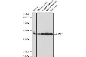 This gene encodes one of seven subunits of the human Arp2/3 protein complex. The Arp2/3 protein complex has been implicated in the control of actin polymerization in cells and has been conserved through evolution. The exact role of the protein encoded by this gene, the p34 subunit, has yet to be determined. Two alternatively spliced variants have been characterized to date. Additional alternatively spliced variants have been described but their full length nature has not been determined.,ARPC2, ARC34, PNAS-139, PRO2446, p34-Arc, actin-related protein 2/3 complex subunit 2,Signal Transduction,Cell Biology & Developmental Biology,Cytoskeleton,Microfilaments,Actins,ARPC2