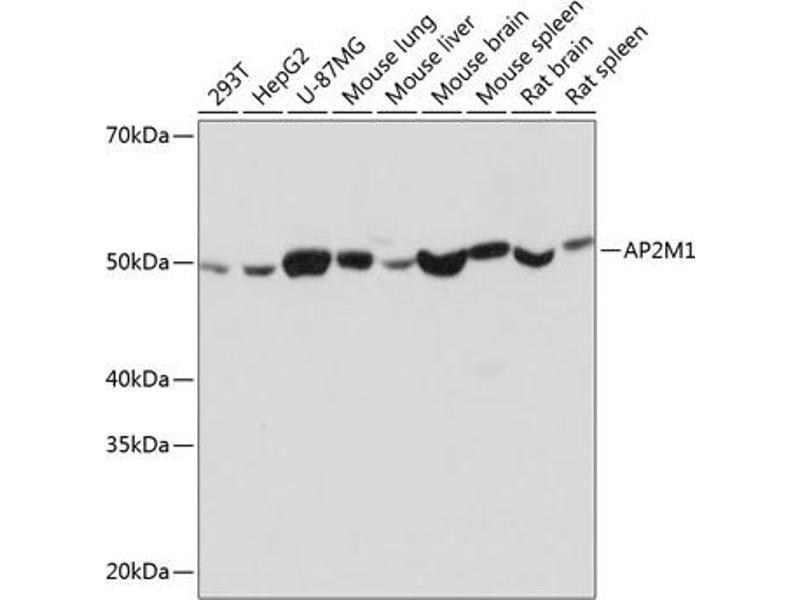 This gene encodes a subunit of the heterotetrameric coat assembly protein complex 2 (AP2), which belongs to the adaptor complexes medium subunits family. The encoded protein is required for the activity of a vacuolar ATPase, which is responsible for proton pumping occurring in the acidification of endosomes and lysosomes. The encoded protein may also play an important role in regulating the intracellular trafficking and function of CTLA-4 protein. Three transcript variants encoding different isoforms have been found for this gene. [provided by RefSeq, Jul 2015],AP50, CLAPM1, mu2,Neurodegenerative Diseases,Neuroscience,Protein phosphorylation,Signal Transduction,AP2M1