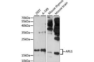 The protein encoded by this gene belongs to the ARL (ADP-ribosylation factor-like) family of proteins, which are structurally related to ADP-ribosylation factors (ARFs). ARFs, described as activators of cholera toxin (CT) ADP-ribosyltransferase activity, regulate intracellular vesicular membrane trafficking, and stimulate a phospholipase D (PLD) isoform. Although, ARL proteins were initially thought not to activate CT or PLD, later work showed that they are weak stimulators of PLD and CT in a phospholipid dependent manner. Alternative splicing results in multiple transcript variants encoding different isoforms.,ARL1,ARFL1,Signal Transduction,ARL1