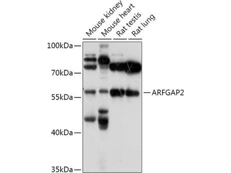 GTPase-activating protein (GAP for ADP ribosylation factor 1 (ARF1. Implicated in coatomer-mediated protein transport between the Golgi complex and the endoplasmic reticulum. Hydrolysis of ARF1-bound GTP may lead to dissociation of coatomer from Golgi-derived membranes to allow fusion with target membranes.,IRZ,NBLA10535,ZFP289,ZNF289,ARFGAP2,Epigenetics & Nuclear Signaling,Transcription Factors,ARFGAP2