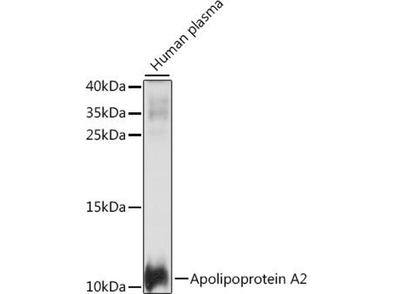 This gene encodes apolipoprotein (apo-) A-II, which is the second most abundant protein of the high density lipoprotein particles. The protein is found in plasma as a monomer, homodimer, or heterodimer with apolipoprotein D. Defects in this gene may result in apolipoprotein A-II deficiency or hypercholesterolemia.,APOA2,Apo-AII,ApoA-II,apoAII,Cancer,Signal Transduction,Endocrine & Metabolism,Lipid Metabolism,Cholesterol Metabolism,Cardiovascular,Lipids,Lipoproteins/Apolipoproteins,APOA2