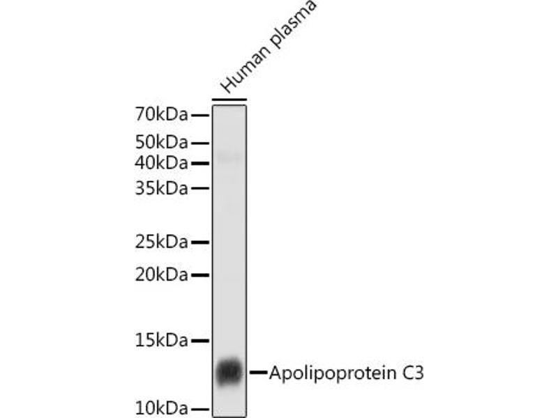 Apolipoprotein C-III is a very low density lipoprotein (VLDL) protein. APOC3 inhibits lipoprotein lipase and hepatic lipase, it is thought to delay catabolism of triglyceride-rich particles. The APOA1, APOC3 and APOA4 genes are closely linked in both rat and human genomes. The A-I and A-IV genes are transcribed from the same strand, while the A-1 and C-III genes are convergently transcribed. An increase in apoC-III levels induces the development of hypertriglyceridemia. [provided by RefSeq, Jul 2008],APOCIII, HALP2,Cancer,Cardiovascular,Endocrine & Metabolism,Lipid Metabolism,Lipids,Lipids_Lipoproteins/Apolipoproteins,Signal Transduction,APOC3
