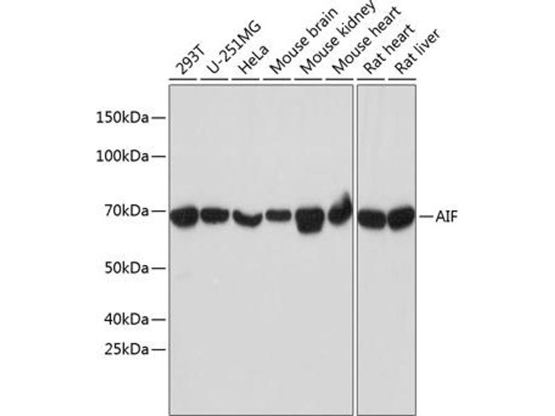 This gene encodes a flavoprotein essential for nuclear disassembly in apoptotic cells, and it is found in the mitochondrial intermembrane space in healthy cells. Induction of apoptosis results in the translocation of this protein to the nucleus where it affects chromosome condensation and fragmentation. In addition, this gene product induces mitochondria to release the apoptogenic proteins cytochrome c and caspase-9. Mutations in this gene cause combined oxidative phosphorylation deficiency 6 (COXPD6), a severe mitochondrial encephalomyopathy, as well as Cowchock syndrome, also known as X-linked recessive Charcot-Marie-Tooth disease-4 (CMTX-4), a disorder resulting in neuropathy, and axonal and motor-sensory defects with deafness and mental retardation. Alternative splicing results in multiple transcript variants. A related pseudogene has been identified on chromosome 10. [provided by RefSeq, Aug 2015],AIF,CMT2D,CMTX4,COWCK,COXPD6,DFNX5,NADMR,NAMSD,PDCD8,AIFM1,Apoptosis,Apoptosis_Mitochondrial Control of Apoptosis,Cell Biology & Developmental Biology,AIFM1