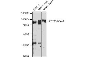 This gene encodes Lutheran blood group glycoprotein, a member of the immunoglobulin superfamily and a receptor for the extracellular matrix protein, laminin. The protein contains five extracellular immunoglobulin domains, a single transmembrane domain, and a short C-terminal cytoplasmic tail. This protein may play a role in epithelial cell cancer and in vaso-occlusion of red blood cells in sickle cell disease. Polymorphisms in this gene define some of the antigens in the Lutheran system and also the Auberger system. Inactivating variants of this gene result in the recessive Lutheran null phenotype, Lu(a-b-), of the Lutheran blood group. Two transcript variants encoding different isoforms have been found for this gene. [provided by RefSeq, May 2012],AU, CD239, LU, MSK19,Blood,Blood_Blood Cell Antigens,Cardiovascular,CDs,Immunology & Inflammation,BCAM