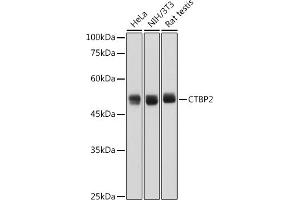 This gene produces alternative transcripts encoding two distinct proteins. One protein is a transcriptional repressor, while the other isoform is a major component of specialized synapses known as synaptic ribbons. Both proteins contain a NAD+ binding domain similar to NAD+-dependent 2-hydroxyacid dehydrogenases. A portion of the 3' untranslated region was used to map this gene to chromosome 21q21.3, however, it was noted that similar loci elsewhere in the genome are likely. Blast analysis shows that this gene is present on chromosome 10. Several transcript variants encoding two different isoforms have been found for this gene.,CTBP2, C-terminal-binding protein 2,Epigenetics & Nuclear Signaling,Cell Biology & Developmental Biology,Notch Signaling Pathway,Neuroscience,Cell Type Marker,Neuron marker,Synapse marker,CTBP2