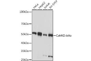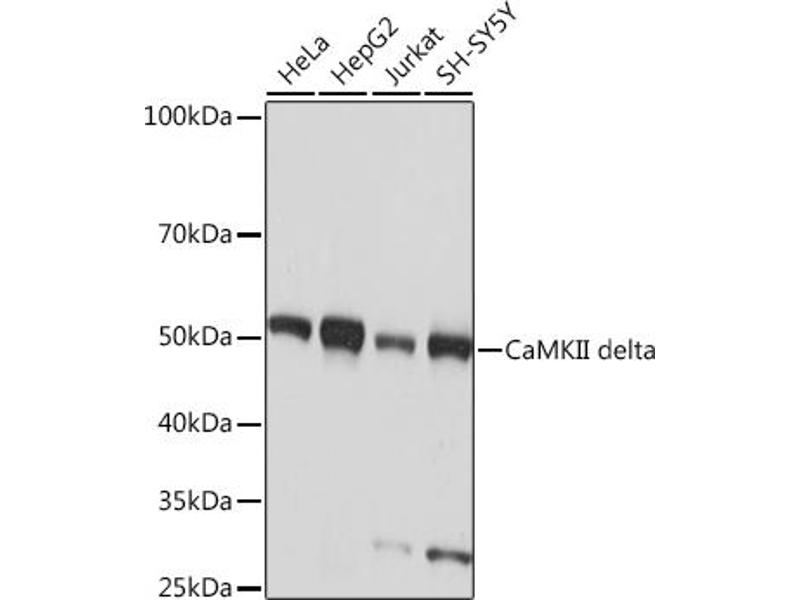 The product of this gene belongs to the serine/threonine protein kinase family and to the Ca(2+)/calmodulin-dependent protein kinase subfamily. Calcium signaling is crucial for several aspects of plasticity at glutamatergic synapses. In mammalian cells, the enzyme is composed of four different chains: alpha, beta, gamma, and delta. The product of this gene is a delta chain. Alternative splicing results in multiple transcript variants encoding distinct isoforms. Distinct isoforms of this chain have different expression patterns.[provided by RefSeq, Nov 2008],CAMKD,Apoptosis,Apoptosis_Mitochondrial Control of Apoptosis,B Cell Receptor Signaling Pathway,Calcium Signaling,Cancer,Cardiovascular,Cell Biology & Developmental Biology,Endocrine & Metabolism,ErbB-HER Signaling Pathway,G protein signaling,G protein signaling_G-Protein-Coupled Receptors Signaling to MAPK/Erk,Heart,Heart_Hypertrophy,Hypoxia,Immunology & Inflammation,Neuroscience,Phospholipase Signaling Pathway,Signal Transduction,CAMK2D