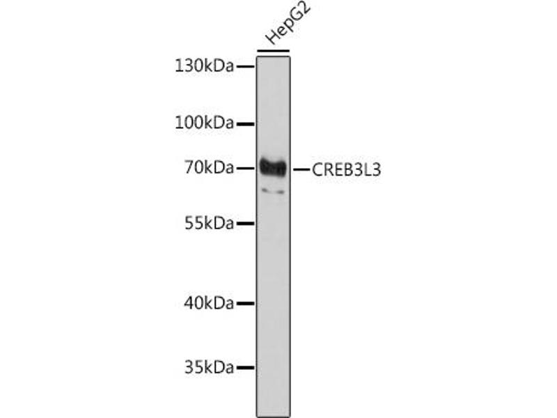 This gene encodes a member of the basic-leucine zipper family and the AMP-dependent transcription factor family. The encoded protein is localized to the endoplasmic reticulum and acts as a transcription factor activated by cyclic AMP stimulation. The encoded protein binds the cyclic AMP response element (CRE) and the box-B element and has been linked to acute inflammatory response, hepatocellular carcinoma, triglyceride metabolism, and hepcidin expression. Alternative splicing results in multiple transcript variants.,CREB3L3,CREB-H,CREBH,HYST1481,Epigenetics & Nuclear Signaling,Transcription Factors,Neuroscience,Neurodegenerative Diseases,CREB3L3