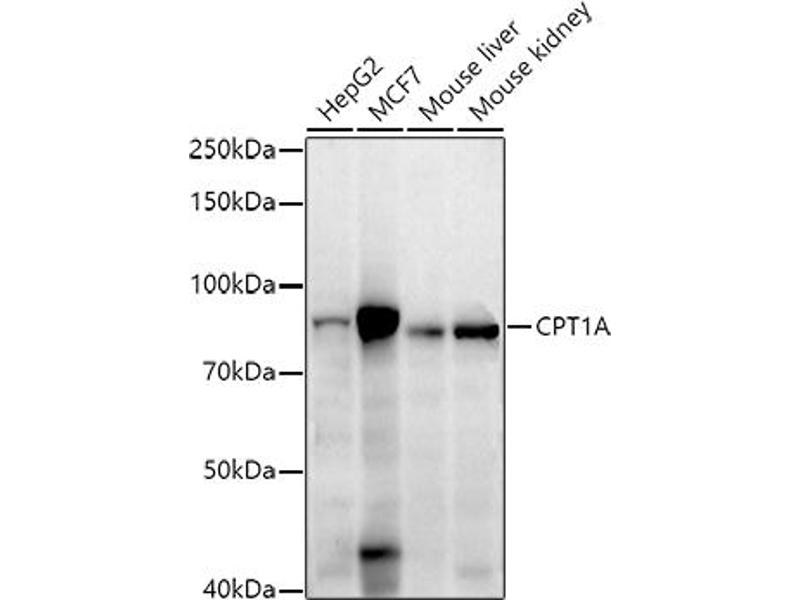 - The mitochondrial oxidation of long-chain fatty acids is initiated by the sequential action of carnitine palmitoyltransferase I (which is located in the outer membrane and is detergent-labile) and carnitine palmitoyltransferase II (which is located in the inner membrane and is detergent-stable), together with a carnitine-acylcarnitine translocase. CPT I is the key enzyme in the carnitine-dependent transport across the mitochondrial inner membrane and its deficiency results in a decreased rate of fatty acid beta-oxidation. Alternatively spliced transcript variants encoding different isoforms have been found for this gene.,CPT1A,CPT1,CPT1-L,L-CPT1,Cancer,Signal Transduction,Endocrine & Metabolism,Mitochondrial metabolism,Mitochondrial markers,Lipid Metabolism,AMPK Signaling Pathway,Endocrine and metabolic diseases,Obesity,Cardiovascular,Lipids,Fatty Acids,CPT1A