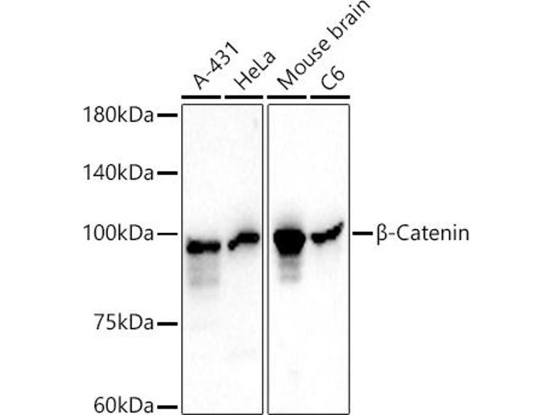 The protein encoded by this gene is part of a complex of proteins that constitute adherens junctions (AJs). AJs are necessary for the creation and maintenance of epithelial cell layers by regulating cell growth and adhesion between cells. The encoded protein also anchors the actin cytoskeleton and may be responsible for transmitting the contact inhibition signal that causes cells to stop dividing once the epithelial sheet is complete. Finally, this protein binds to the product of the APC gene, which is mutated in adenomatous polyposis of the colon. Mutations in this gene are a cause of colorectal cancer (CRC), pilomatrixoma (PTR), medulloblastoma (MDB), and ovarian cancer. Alternative splicing results in multiple transcript variants. [provided by RefSeq, Aug 2016],CTNNB,MRD19,armadillo,beta Catenin,CTNNB1,Angiogenesis,Apoptosis,Cancer,Cardiovascular,Cell Adhesion,Cell Adhesion_Cadherins,Cell Adhesion_Tight Junctions,Cell Biology & Developmental Biology,Cytoskeleton,Cytoskeleton_Microfilaments,Epigenetics & Nuclear Signaling,ErbB-HER Signaling Pathway,ESC Pluripotency and Differentiation,Immunology & Inflammation,Invasion and Metastasis,Neuroscience,Protein phosphorylation,Signal Transduction,Stem Cells,Transcription Factors,Wnt/β-Catenin Signaling Pathway,CTNNB1