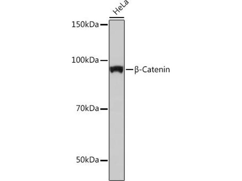 The protein encoded by this gene is part of a complex of proteins that constitute adherens junctions (AJs). AJs are necessary for the creation and maintenance of epithelial cell layers by regulating cell growth and adhesion between cells. The encoded protein also anchors the actin cytoskeleton and may be responsible for transmitting the contact inhibition signal that causes cells to stop dividing once the epithelial sheet is complete. Finally, this protein binds to the product of the APC gene, which is mutated in adenomatous polyposis of the colon. Mutations in this gene are a cause of colorectal cancer (CRC), pilomatrixoma (PTR), medulloblastoma (MDB), and ovarian cancer. Alternative splicing results in multiple transcript variants. [provided by RefSeq, Aug 2016],CTNNB,MRD19,armadillo,beta Catenin,CTNNB1,Angiogenesis,Apoptosis,Cancer,Cardiovascular,Cell Adhesion,Cell Adhesion_Cadherins,Cell Adhesion_Tight Junctions,Cell Biology & Developmental Biology,Cytoskeleton,Cytoskeleton_Microfilaments,Epigenetics & Nuclear Signaling,ErbB-HER Signaling Pathway,ESC Pluripotency and Differentiation,Immunology & Inflammation,Invasion and Metastasis,Neuroscience,Protein phosphorylation,Signal Transduction,Stem Cells,Transcription Factors,Wnt/β-Catenin Signaling Pathway,CTNNB1