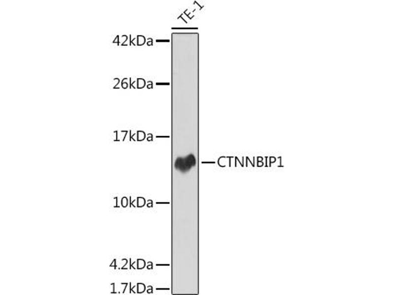 The protein encoded by this gene binds CTNNB1 and prevents interaction between CTNNB1 and TCF family members. The encoded protein is a negative regulator of the Wnt signaling pathway. Two transcript variants encoding the same protein have been found for this gene.,CTNNBIP1, ICAT, beta-catenin-interacting protein 1,Cell Biology & Developmental Biology,Wnt/β-Catenin Signaling Pathway,CTNNBIP1