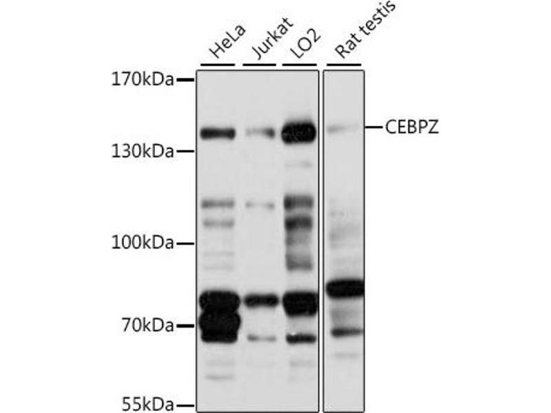 This gene belongs to the CEBP family. The encoded protein plays a role in cellular response to environmental stimuli through a transcriptional process that involves heat shock factors, conserved DNA elements (heat shock elements or HSEs) and CCAAT boxes. The protein acts as a DNA-binding transcriptional activator and regulates the heat-shock protein 70 (HSP70) promoter in a CCAAT-dependent manner. The protein is also involved in cell growth and differentiation, particularly, hematopoietic differentiation. Methylation of the promoter of this gene or mutations within the gene may be correlated with occurance of acute myeloid leukemia (AML).,CEBPZ,CBF,CBF2,HSP-CBF,NOC1,Epigenetics & Nuclear Signaling,Transcription Factors,RNA Binding,CEBPZ