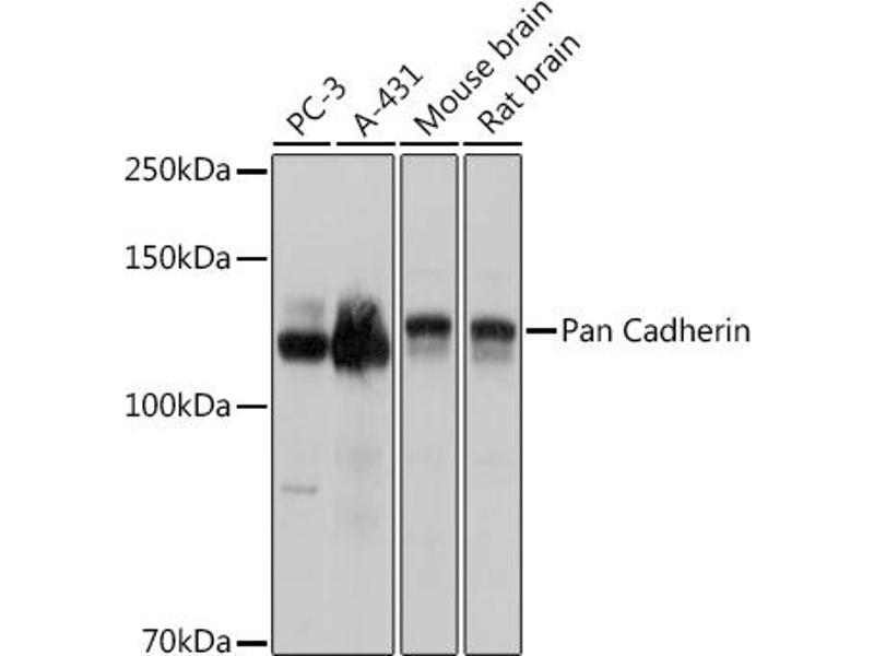 - A synthetic peptide corresponding to a sequence within amino acids 800-882 of pan-cadherin (NP_004351.1).