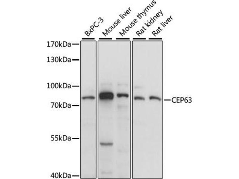 The Rabbit Polyclonal anti-CEP63 antibody has been validated for WB. It is suitable to detect CEP63 in samples from Human.