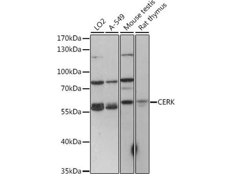 CERK converts ceramide to ceramide 1-phosphate (C1P), a sphingolipid metabolite. Both CERK and C1P have been implicated in various cellular processes, including proliferation, apoptosis, phagocytosis, and inflammation (Kim et al., 2006 [PubMed 16488390]).,CERK,LK4,dA59H18.2,dA59H18.3,hCERK,Signal Transduction,Kinase,Cell Biology & Developmental Biology,Apoptosis,Cell Cycle,CERK