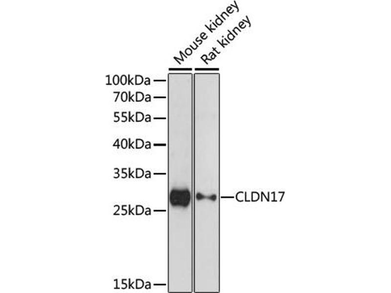 - A synthetic peptide corresponding to a sequence within amino acids 100 to the C-terminus of human CLDN17 (NP_036263.1).
