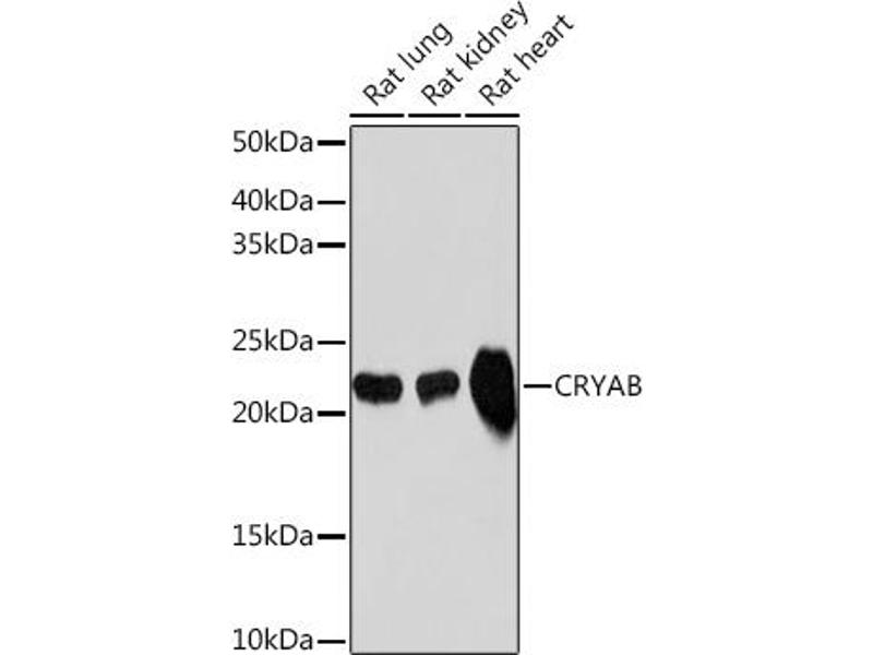 Mammalian lens crystallins are divided into alpha, beta, and gamma families. Alpha crystallins are composed of two gene products: alpha-A and alpha-B, for acidic and basic, respectively. Alpha crystallins can be induced by heat shock and are members of the small heat shock protein (HSP20) family. They act as molecular chaperones although they do not renature proteins and release them in the fashion of a true chaperone, instead they hold them in large soluble aggregates. Post-translational modifications decrease the ability to chaperone. These heterogeneous aggregates consist of 30-40 subunits, the alpha-A and alpha-B subunits have a 3:1 ratio, respectively. Two additional functions of alpha crystallins are an autokinase activity and participation in the intracellular architecture. The encoded protein has been identified as a moonlighting protein based on its ability to perform mechanistically distinct functions. Alpha-A and alpha-B gene products are differentially expressed, alpha-A is preferentially restricted to the lens and alpha-B is expressed widely in many tissues and organs. Elevated expression of alpha-B crystallin occurs in many neurological diseases, a missense mutation cosegregated in a family with a desmin-related myopathy. Alternative splicing results in multiple transcript variants. [provided by RefSeq, Jan 2014],CMD1II, CRYA2, CTPP2, CTRCT16, HEL-S-101, HSPB5, MFM2,Apoptosis,Cancer,Cell Biology & Developmental Biology,Endocrine & Metabolism,Kinase,Kinase_Tyrosine kinases,Neurodegenerative Diseases Markers,Neuroscience,Other Neurological disorders,Signal Transduction,CRYAB