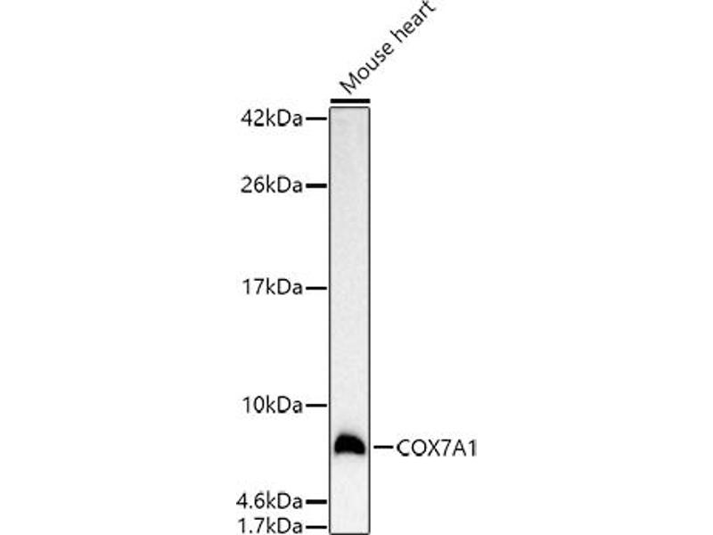 Cytochrome c oxidase (COX), the terminal component of the mitochondrial respiratory chain, catalyzes the electron transfer from reduced cytochrome c to oxygen. This component is a heteromeric complex consisting of 3 catalytic subunits encoded by mitochondrial genes and multiple structural subunits encoded by nuclear genes. The mitochondrially-encoded subunits function in electron transfer, and the nuclear-encoded subunits may function in the regulation and assembly of the complex. This nuclear gene encodes polypeptide 1 (muscle isoform) of subunit VIIa and the polypeptide 1 is present only in muscle tissues. Other polypeptides of subunit VIIa are present in both muscle and nonmuscle tissues, and are encoded by different genes.,COX7A,COX7AH,COX7AM,COX7A1,Signal Transduction,Endocrine & Metabolism,Mitochondrial metabolism,Mitochondrial markers,Neuroscience,Neurodegenerative Diseases,Cardiovascular,Heart,Cardiac metabolism,COX7A1