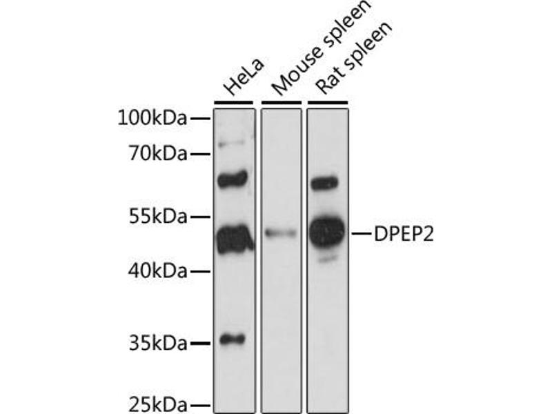 - DPEP2 belongs to the membrane-bound dipeptidase (EC 3.4.13.19) family. These enzymes hydrolyze a variety of dipeptides, including leukotriene D4, the beta-lactam ring of some antibiotics, and cystinyl-bis-glycine (cys-bis-gly) formed during glutathione degradation (Habib et al., 2003 [PubMed 12738806]).[supplied by OMIM, Mar 2008],DPEP2,MBD2,Cancer,Cell Biology & Developmental Biology,Ubiquitin,Endocrine & Metabolism,DPEP2