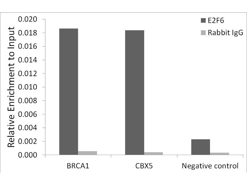 This gene encodes a member of a family of transcription factors that play a crucial role in the control of the cell cycle. The protein encoded by this gene lacks the transactivation and tumor suppressor protein association domains found in other family members, and contains a modular suppression domain that functions in the inhibition of transcription. It interacts in a complex with chromatin modifying factors. There are pseudogenes for this gene on chromosomes 22 and X. Alternative splicing results in multiple transcript variants. [provided by RefSeq, May 2013],E2F-6,Epigenetics & Nuclear Signaling,ErbB-HER Signaling Pathway,Signal Transduction,Transcription Factors,E2F6