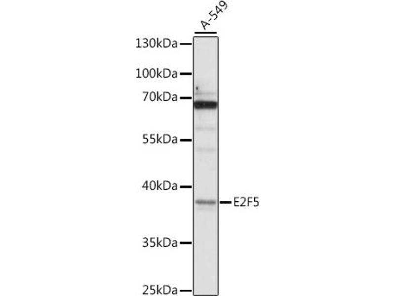 - The protein encoded by this gene is a member of the E2F family of transcription factors. The E2F family plays a crucial role in the control of cell cycle and action of tumor suppressor proteins and is also a target of the transforming proteins of small DNA tumor viruses. The E2F proteins contain several evolutionarily conserved domains that are present in most members of the family. These domains include a DNA binding domain, a dimerization domain which determines interaction with the differentiation regulated transcription factor proteins (DP), a transactivation domain enriched in acidic amino acids, and a tumor suppressor protein association domain which is embedded within the transactivation domain. This protein is differentially phosphorylated and is expressed in a wide variety of human tissues. It has higher identity to E2F4 than to other family members. Both this protein and E2F4 interact with tumor suppressor proteins p130 and p107, but not with pRB. Alternative splicing results in multiple variants encoding different isoforms.,E2F5,E2F-5,Epigenetics & Nuclear Signaling,Transcription Factors,Signal Transduction,ErbB-HER Signaling Pathway,E2F5