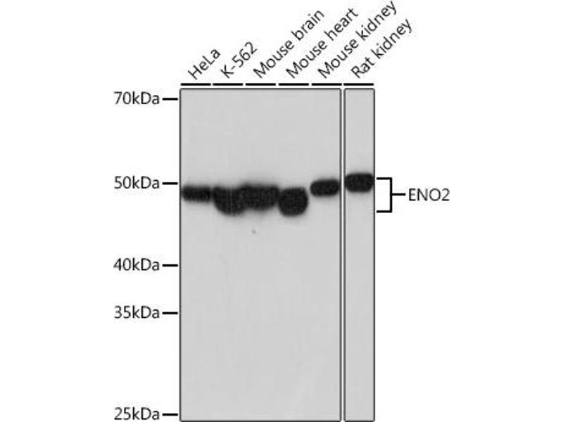 The Rabbit Monoclonal anti-ENO2/NSE antibody has been validated for WB. It is suitable to detect ENO2/NSE in samples from Human.