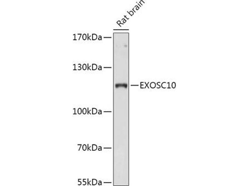 Putative catalytic component of the RNA exosome complex which has 3'->5' exoribonuclease activity and participates in a multitude of cellular RNA processing and degradation events. In the nucleus, the RNA exosome complex is involved in proper maturation of stable RNA species such as rRNA, snRNA and snoRNA, in the elimination of RNA processing by-products and non-coding 'pervasive' transcripts, such as antisense RNA species and promoter-upstream transcripts (PROMPTs, and of mRNAs with processing defects, thereby limiting or excluding their export to the cytoplasm. The RNA exosome may be involved in Ig class switch recombination (CSR and/or Ig variable region somatic hypermutation (SHM by targeting AICDA deamination activity to transcribed dsDNA substrates. In the cytoplasm, the RNA exosome complex is involved in general mRNA turnover and specifically degrades inherently unstable mRNAs containing AU-rich elements (AREs within their 3' untranslated regions, and in RNA surveillance pathways, preventing translation of aberrant mRNAs. It seems to be involved in degradation of histone mRNA. EXOSC10 has 3'-5' exonuclease activity (By similarity. EXOSC10 is required for nucleolar localization of C1D and probably mediates the association of MTREX, C1D and MPHOSPH6 with the RNA exosome involved in the maturation of 5.8S rRNA.,EXOSC10,PM-Scl,PM/Scl-100,PMSCL,PMSCL2,RRP6,Rrp6p,p2,p3,p4,Epigenetics & Nuclear Signaling,RNA Binding,Immunology & Inflammation,EXOSC10