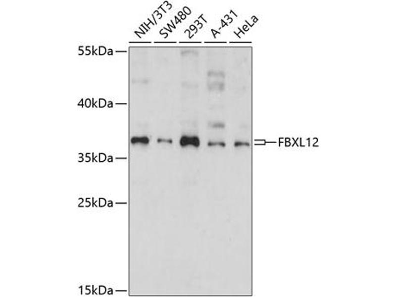 Members of the F-box protein family, such as FBXL12, are characterized by an approximately 40-amino acid F-box motif. SCF complexes, formed by SKP1 (MIM 601434), cullin (see CUL1, MIM 603134), and F-box proteins, act as protein-ubiquitin ligases. F-box proteins interact with SKP1 through the F box, and they interact with ubiquitination targets through other protein interaction domains (Jin et al., 2004 [PubMed 15520277]).[supplied by OMIM, Mar 2008],FBXL12,Fbl12,Cell Biology & Developmental Biology,Ubiquitin,FBXL12