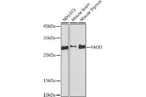 - Apoptotic adaptor molecule that recruits caspase-8 or caspase-10 to the activated Fas (CD95 or TNFR-1 receptors. The resulting aggregate called the death-inducing signaling complex (DISC performs caspase-8 proteolytic activation. Active caspase-8 initiates the subsequent cascade of caspases mediating apoptosis. Involved in interferon-mediated antiviral immune response, playing a role in the positive regulation of interferon signaling.,Mort1/FADD,FADD