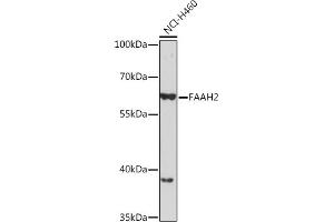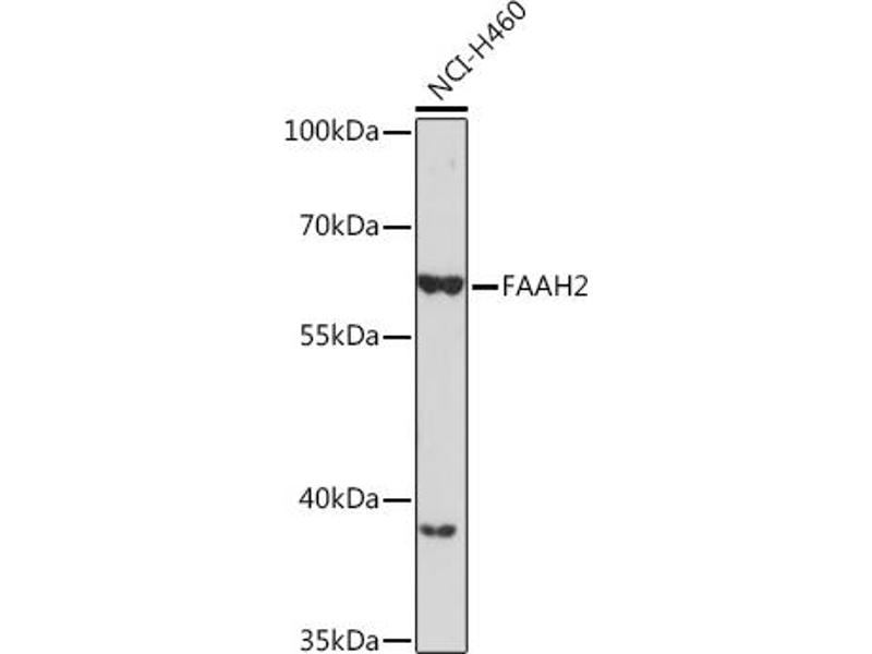 This gene encodes a fatty acid amide hydrolase that shares a conserved protein motif with the amidase signature family of enzymes. The encoded enzyme is able to catalyze the hydrolysis of a broad range of bioactive lipids, including those from the three main classes of fatty acid amides, N-acylethanolamines, fatty acid primary amides and N-acyl amino acids. This enzyme has a preference for monounsaturated acyl chains as a substrate.[provided by RefSeq, Sep 2009],AMDD,FAAH2,Cancer,Cardiovascular,Endocrine & Metabolism,Lipid Metabolism,Lipids,Lipids_Fatty Acids,FAAH2