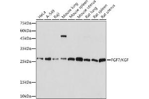 The protein encoded by this gene is a member of the fibroblast growth factor (FGF) family. FGF family members possess broad mitogenic and cell survival activities, and are involved in a variety of biological processes, including embryonic development, cell growth, morphogenesis, tissue repair, tumor growth and invasion. This protein is a potent epithelial cell-specific growth factor, whose mitogenic activity is predominantly exhibited in keratinocytes but not in fibroblasts and endothelial cells. Studies of mouse and rat homologs of this gene implicated roles in morphogenesis of epithelium, reepithelialization of wounds, hair development and early lung organogenesis. [provided by RefSeq, Jul 2008],HBGF-7, KGF,Cancer,Cell Biology & Developmental Biology,Growth factors,Signal Transduction,FGF7