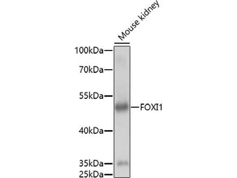 This gene belongs to the forkhead family of transcription factors, which is characterized by a distinct forkhead domain. This gene may play an important role in the development of the cochlea and vestibulum, as well as in embryogenesis. The encoded protein has been found to be required for the transcription of four subunits of a proton pump found in the inner ear, the kidney, and the epididymis. Mutations in this gene have been associated with deafness, autosomal recessive 4.,FOXI1,FKH10,FKHL10,FREAC-6,FREAC6,HFH-3,HFH3,Epigenetics & Nuclear Signaling,Transcription Factors,FOXI1