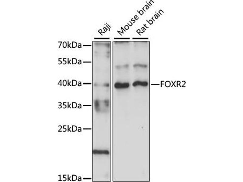 The Rabbit Polyclonal anti-FOXR2 antibody has been validated for WB. It is suitable to detect FOXR2 in samples from Human.