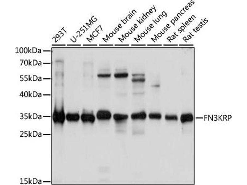 A high concentration of glucose can result in non-enzymatic oxidation of proteins by reaction of glucose and lysine residues (glycation). Proteins modified in this way are less active or functional. This gene encodes an enzyme which catalyzes the phosphorylation of psicosamines and ribulosamines compared to the neighboring gene which encodes a highly similar enzyme, fructosamine-3-kinase, which has different substrate specificity. The activity of both enzymes may result in deglycation of proteins to restore their function. Alternative splicing results in multiple transcript variants.,FN3KRP,FN3KL,Cancer,Signal Transduction,Cell Biology & Developmental Biology,Endocrine & Metabolism,FN3KRP