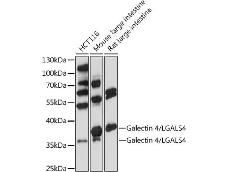The galectins are a family of beta-galactoside-binding proteins implicated in modulating cell-cell and cell-matrix interactions. The expression of this gene is restricted to small intestine, colon, and rectum, and it is underexpressed in colorectal cancer.,GAL4,L36LBP,LGALS4,Epigenetics & Nuclear Signaling,Transcription Factors,Signal Transduction,Cell Biology & Developmental Biology,Cell Adhesion,Gap Junctions,Cytoskeleton,Endocrine & Metabolism,LGALS4