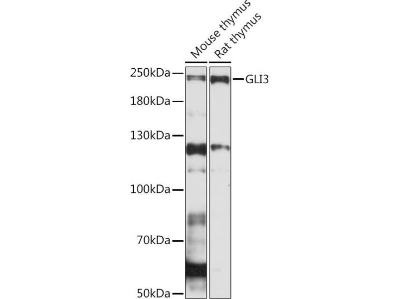 This gene encodes a protein which belongs to the C2H2-type zinc finger proteins subclass of the Gli family. They are characterized as DNA-binding transcription factors and are mediators of Sonic hedgehog (Shh) signaling. The protein encoded by this gene localizes in the cytoplasm and activates patched Drosophila homolog (PTCH) gene expression. It is also thought to play a role during embryogenesis. Mutations in this gene have been associated with several diseases, including Greig cephalopolysyndactyly syndrome, Pallister-Hall syndrome, preaxial polydactyly type IV, and postaxial polydactyly types A1 and B.,GLI3,ACLS,GCPS,GLI3-190,GLI3FL,PAP-A,PAPA,PAPA1,PAPB,PHS,PPDIV,Epigenetics & Nuclear Signaling,Transcription Factors,Signal Transduction,Cell Biology & Developmental Biology,Hedgehog Signaling Pathway,Neuroscience,Stem Cells,GLI3