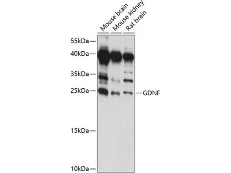 This gene encodes a secreted ligand of the TGF-beta (transforming growth factor-beta) superfamily of proteins. Ligands of this family bind various TGF-beta receptors leading to recruitment and activation of SMAD family transcription factors that regulate gene expression. The encoded preproprotein is proteolytically processed to generate each subunit of the disulfide-linked homodimer. The recombinant form of this protein, a highly conserved neurotrophic factor, was shown to promote the survival and differentiation of dopaminergic neurons in culture, and was able to prevent apoptosis of motor neurons induced by axotomy. This protein is a ligand for the product of the RET (rearranged during transfection) protooncogene. Mutations in this gene may be associated with Hirschsprung disease and Tourette syndrome. This gene encodes multiple protein isoforms that may undergo similar proteolytic processing.,GDNF,ATF,ATF1,ATF2,HFB1-GDNF,HSCR3,Cell Biology & Developmental Biology,Apoptosis,Growth factor,Neuroscience,Neurodegenerative Diseases,Dopamine Signaling in Parkinson's Disease,Other Neurological disorders,Amyotrophic lateral sclerosis-ALS,GDNF