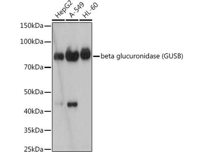 The Rabbit Monoclonal anti-Glucuronidase beta antibody has been validated for WB. It is suitable to detect Glucuronidase beta in samples from Human.