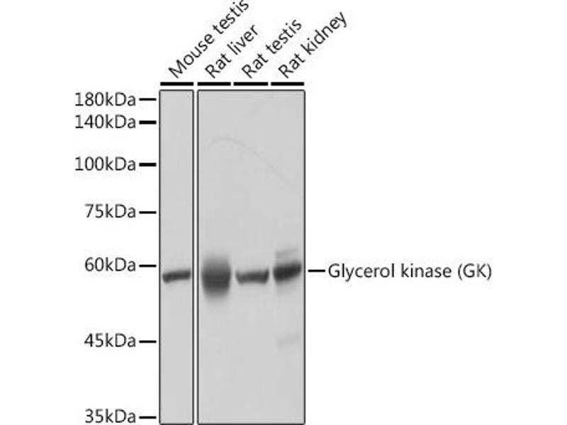 The protein encoded by this gene belongs to the FGGY kinase family. This protein is a key enzyme in the regulation of glycerol uptake and metabolism. It catalyzes the phosphorylation of glycerol by ATP, yielding ADP and glycerol-3-phosphate. Mutations in this gene are associated with glycerol kinase deficiency (GKD). Alternatively spliced transcript variants encoding different isoforms have been found for this gene.,GK, GK1, GKD, glycerol kinase,Cancer,Signal Transduction,Endocrine & Metabolism,Lipid Metabolism,Glycerol kinase