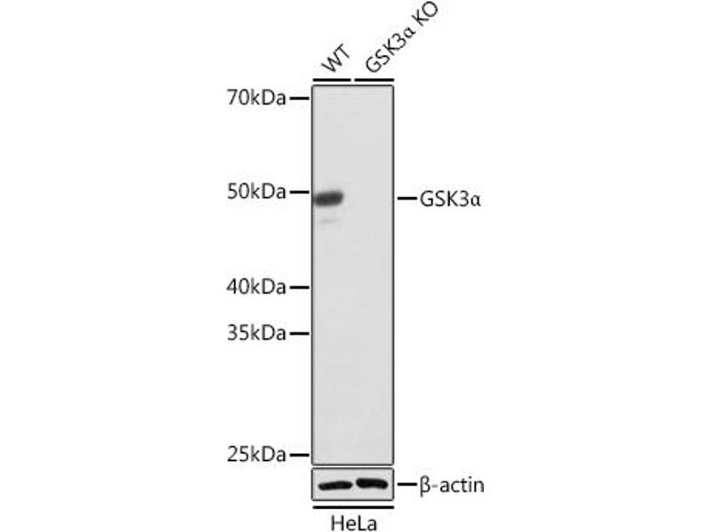The Rabbit Monoclonal anti-GSK3 alpha antibody (ABIN7267467) specifically detects GSK3 alpha in WB and IP.