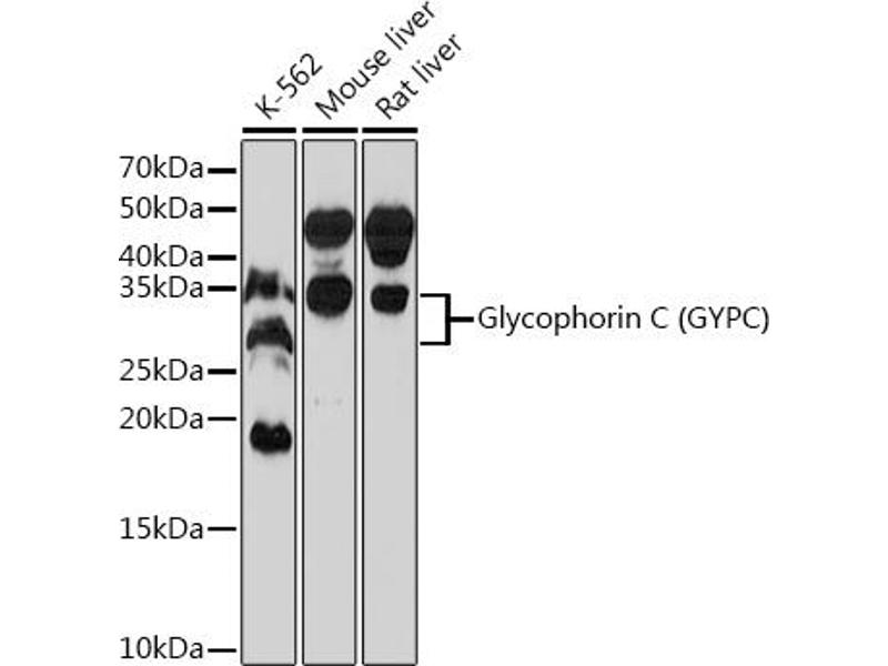 Glycophorin C (GYPC) is an integral membrane glycoprotein. It is a minor species carried by human erythrocytes, but plays an important role in regulating the mechanical stability of red cells. A number of glycophorin C mutations have been described. The Gerbich and Yus phenotypes are due to deletion of exon 3 and 2, respectively. The Webb and Duch antigens, also known as glycophorin D, result from single point mutations of the glycophorin C gene. The glycophorin C protein has very little homology with glycophorins A and B. Alternate splicing results in multiple transcript variants. [provided by RefSeq, Feb 2012],CD236, CD236R, GE, GE:GPC:GPD:GYPD, GPC, GPD, GYPD, PAS-2, PAS-2',Blood,Blood_Blood Cell Antigens,Cardiovascular,CDs,Immunology & Inflammation,GYPC