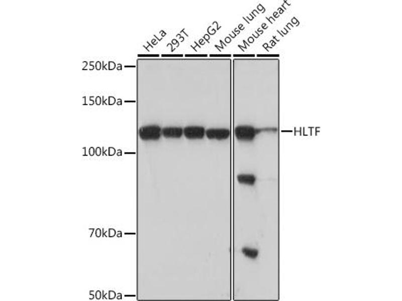 This gene encodes a member of the SWI/SNF family. Members of this family have helicase and ATPase activities and are thought to regulate transcription of certain genes by altering the chromatin structure around those genes. The encoded protein contains a RING finger DNA binding motif. Two transcript variants encoding the same protein have been found for this gene. However, use of an alternative translation start site produces an isoform that is truncated at the N-terminus compared to the full-length protein. [provided by RefSeq, Jul 2008],HIP116, HIP116A, HLTF1, RNF80, SMARCA3, SNF2L3, ZBU1,Cancer,Cell Biology & Developmental Biology,Chromatin Remodeling,Epigenetics & Nuclear Signaling,RNA Binding,Tumor suppressors,Ubiquitin,HLTF