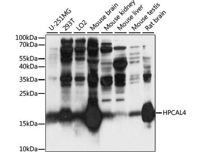 The protein encoded by this gene is highly similar to human hippocalcin protein and hippocalcin like-1 protein. It also has similarity to rat neural visinin-like Ca2+-binding protein-type 1 and 2 proteins. This encoded protein may be involved in the calcium-dependent regulation of rhodopsin phosphorylation. The transcript of this gene has multiple polyadenylation sites. Alternatively spliced transcript variants encoding different isoforms have been found for this gene.,HPCAL4,HLP4,Signal Transduction,Neuroscience,Calcium Signaling,HPCAL4