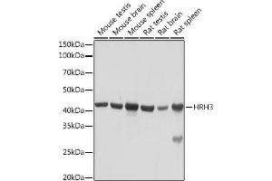 Histamine is a ubiquitous messenger molecule released from mast cells, enterochromaffin-like cells, and neurons. Its various actions are mediated by histamine receptors H1, H2, H3 and H4. This gene encodes one of the histamine receptors (H3) which belongs to the family 1 of G protein-coupled receptors. It is an integral membrane protein and can regulate neurotransmitter release. This receptor can also increase voltage-dependent calcium current in smooth muscles and innervates the blood vessels and the heart in cardiovascular system. [provided by RefSeq, Jul 2008],GPCR97, HH3R,G protein signaling,G protein signaling_G-Protein-Coupled Receptors(GPCR),Neuroscience,Signal Transduction,HRH3
