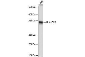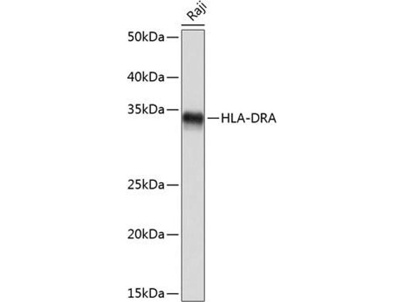 HLA-DRA is one of the HLA class II alpha chain paralogues. This class II molecule is a heterodimer consisting of an alpha and a beta chain, both anchored in the membrane. It plays a central role in the immune system by presenting peptides derived from extracellular proteins. Class II molecules are expressed in antigen presenting cells (APC: B lymphocytes, dendritic cells, macrophages). The alpha chain is approximately 33-35 kDa and its gene contains 5 exons. Exon 1 encodes the leader peptide, exons 2 and 3 encode the two extracellular domains, and exon 4 encodes the transmembrane domain and the cytoplasmic tail. DRA does not have polymorphisms in the peptide binding part and acts as the sole alpha chain for DRB1, DRB3, DRB4 and DRB5. [provided by RefSeq, Jul 2008],HLA-DRA1,Immunology & Inflammation,HLA-DRA