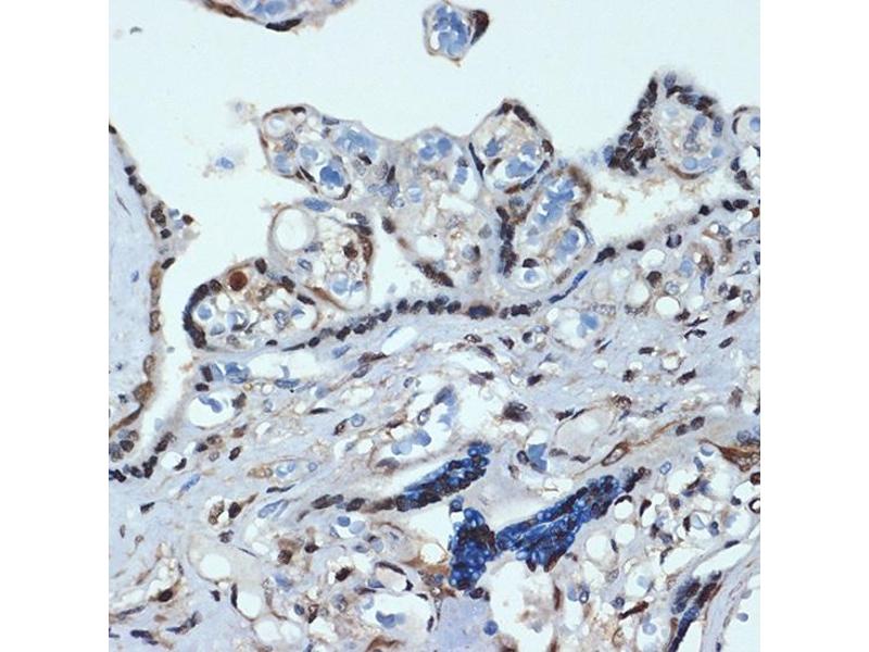 In vertebrates, the genes encoding the class of transcription factors called homeobox genes are found in clusters named A, B, C, and D on four separate chromosomes. Expression of these proteins is spatially and temporally regulated during embryonic development. This gene is part of the A cluster on chromosome 7 and encodes a DNA-binding transcription factor which may regulate gene expression, morphogenesis, and differentiation. This gene is highly similar to the abdominal-B (Abd-B) gene of Drosophila. A specific translocation event which causes a fusion between this gene and the NUP98 gene has been associated with myeloid leukemogenesis. Read-through transcription exists between this gene and the upstream homeobox A10 (HOXA10) gene.,HOXA9, ABD-B, HOX1, HOX1.7, HOX1G, homeobox A9,Epigenetics & Nuclear Signaling,Transcription Factors,Stem Cells,Endothelial Progenitors,HOXA9