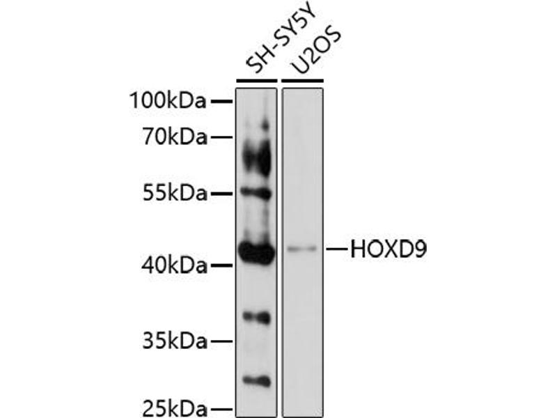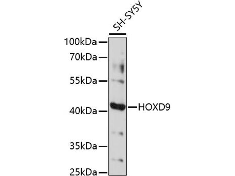 This gene belongs to the homeobox family of genes. The homeobox genes encode a highly conserved family of transcription factors that play an important role in morphogenesis in all multicellular organisms. Mammals possess four similar homeobox gene clusters, HOXA, HOXB, HOXC and HOXD, located on different chromosomes, consisting of 9 to 11 genes arranged in tandem. This gene is one of several homeobox HOXD genes located at 2q31-2q37 chromosome regions. Deletions that removed the entire HOXD gene cluster or 5' end of this cluster have been associated with severe limb and genital abnormalities. The exact role of this gene has not been determined.,HOXD9;HOX4;HOX4C;Hox-4.3;Hox-5.2,Epigenetics & Nuclear Signaling,Transcription Factors,HOXD9
